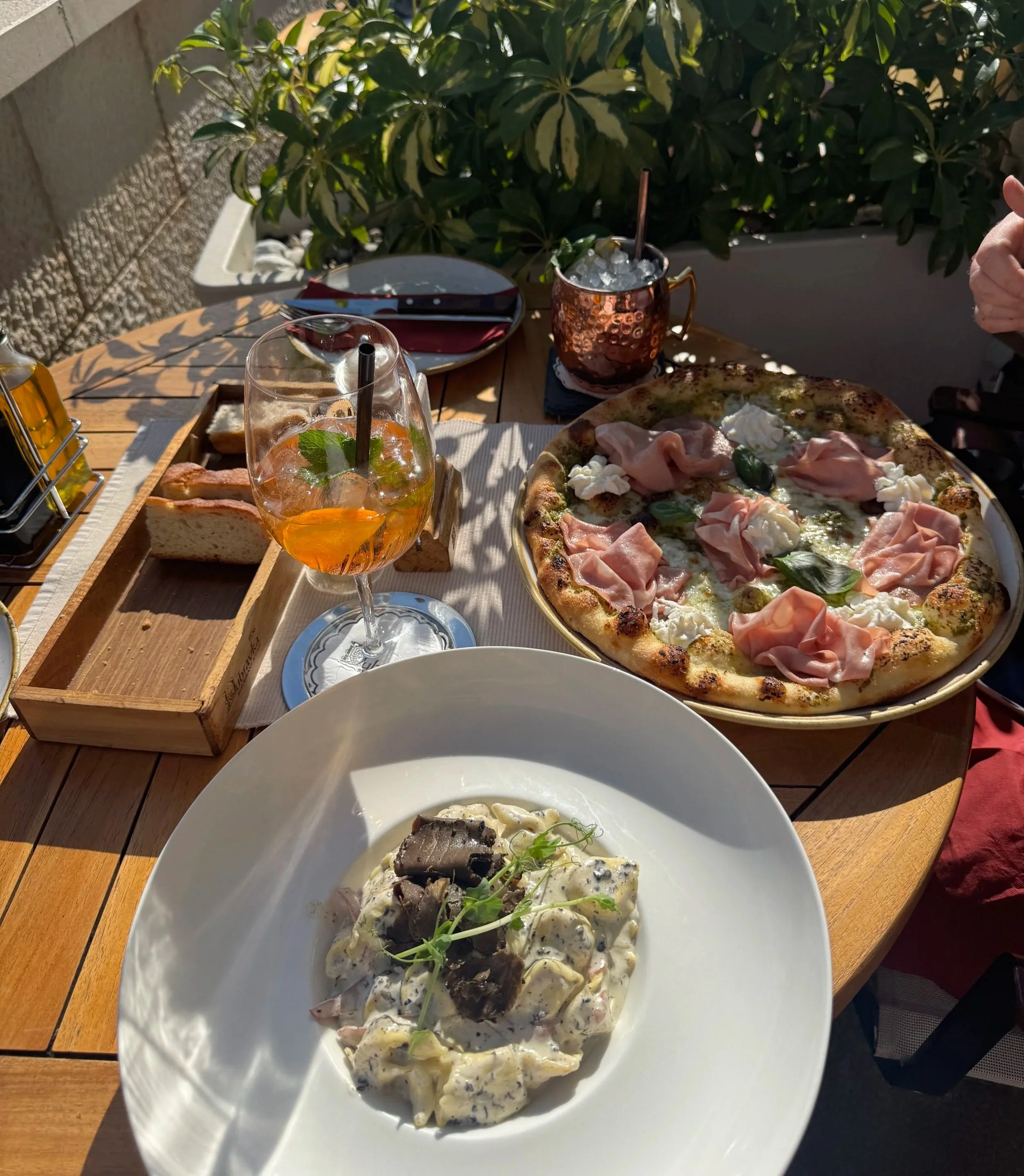 amazing location right by the water, with pizza, pasta, and bread. (Beware: pigeons will not leave you alone!). We LOVED this spot!